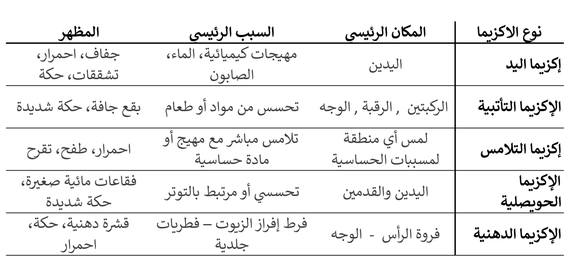 - الأسباب: التعرض المتكرر للمهيجات والحساسية من مواد معينة.